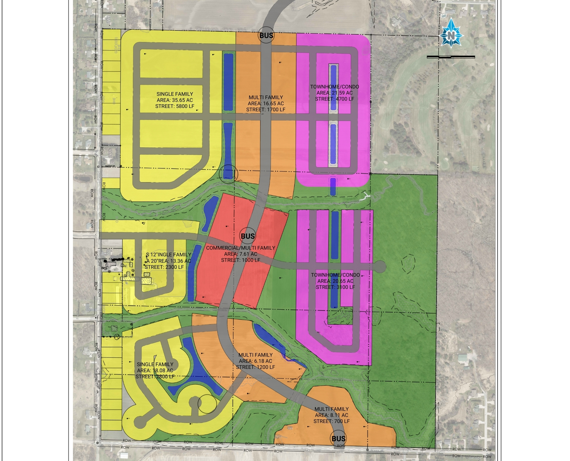 A public client engaged us to develop a comprehensive master plan for a 300-acre neighborhood within a tax incremental district (TID). The effort encompassed nearly five miles of new public streets and utilities, along with regional stormwater infrastructure designed to support long-term growth. The project represented a significant opportunity to shape a connected, resilient community while strategically leveraging public investment to catalyze development.